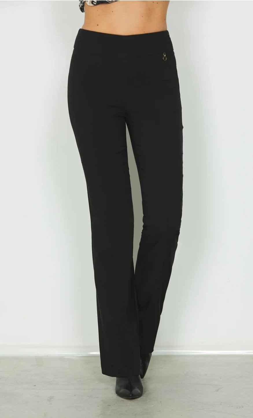 Ottima vestibilità con vita alta e fondo a zampa: i panta BALBINA sno disponibili in più varianti di colore per creare nuovi look.